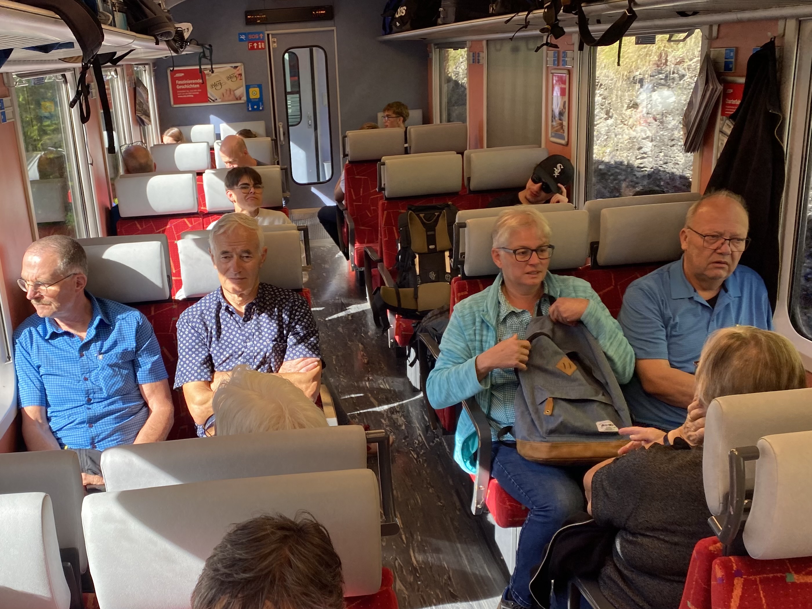 Bei wunderschönem Wetter trafen sich die immer kleiner werdende Reise-Gruppe auf dem Bahnhof in Chur zur Herbstreise ins Engadin.